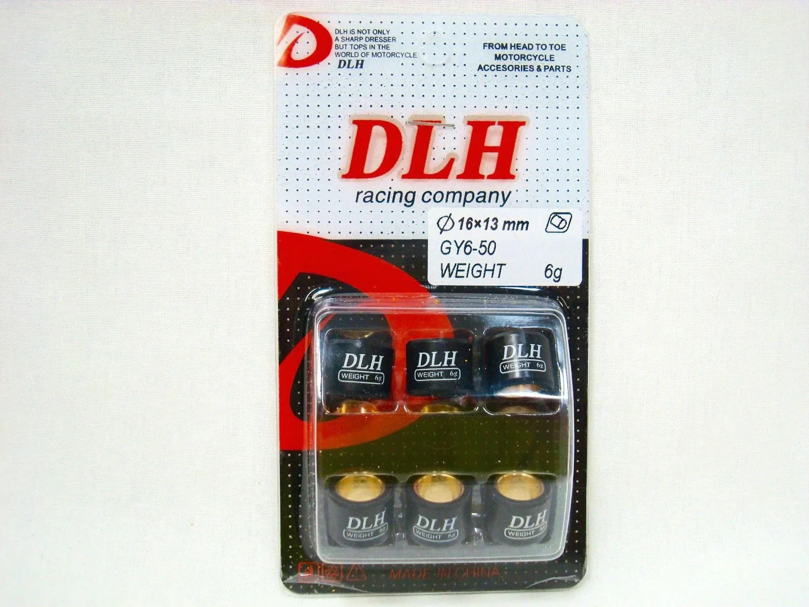 DLH VARIATOR ROLLERS (16mm x 13mm) 6gm FOR CHINESE SCOOTERS WITH 50cc QMB139 MOTORS FITS MOST CHINESE SCOOTERS WITH 50cc QMB139 MOTORS FITS MOST MODELS OF TAOTAO, ICE BEAR, WOLF, JONWAY, JMSTAR, ROKETA, SUNL, TANK, PEACE, COUGAR, GATOR AND MANY OTHERS